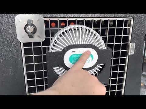 DT-Boxes Pro-cool™ dog crate fan is the great solution for keeping your dog cool in hot weather. On a scorching summer day these tough and powerful rechargeable dog crate fans are built for the job. It's powered by a 5000mAh rechargeable battery that can be charged and powered via a USB cable that plugs into a car's cigarette lighter USB adapter, power bank or a regular outlet. This rechargeable battery powered fan has 3 fan speed settings, LED light with 2 brightness levels, and easily hooks onto the cage door.